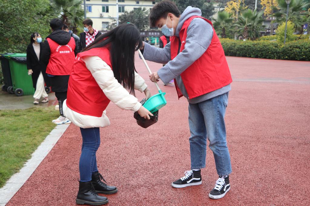 次日,大家还在金华社区开展了青年志愿者活动,同学们穿上了志愿服,拿着扫帚和垃圾袋等清洁工具,一起打扫社区公园,捡拾垃圾,展现出了化工学子的良好精神风貌和状态。