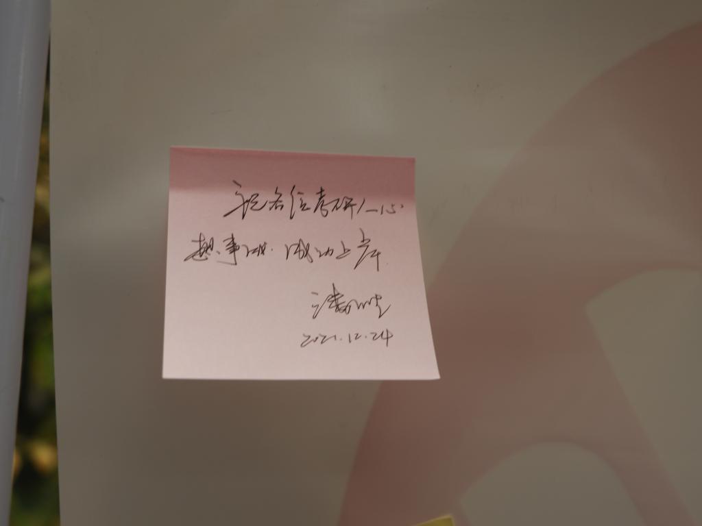参与活动的同学在留言后就可以现场领取水果、奶糖等小礼品。考研的同学表示这次活动体验很棒,幸福感、获得感都有了提升,对考前的紧张感也得到了有效的缓解。