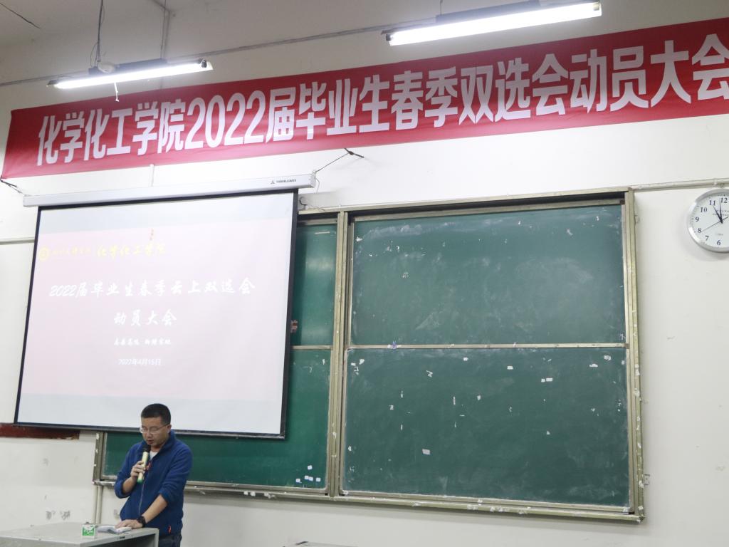 2022年4月15日上午11点,永利3044集团官网于南坝校区一教楼111教室举办了2022届毕业生春季云上双选会动员大会,公司党总支书记朱朝菊、经理赖川、副经理向文军、各教研室主任、学工办全体老师和毕业班带班辅导员及2018级100余名毕业生出席会议,大会由公司党总支副书记潘维主持。