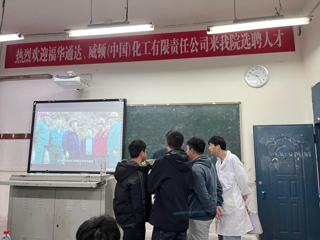 为进一步提高校企合作深度,促进产教融合,给毕业生搭建更好的就业平台,扩大公司毕业生就业渠道,公司于2023年3月16日上午十点半,在南坝校区111教室组织了四川衡准检测技术有限公司的招聘宣讲会;3月17日下午两点半,在南坝校区112教室举办了威顿(中国)化工有限责任公司和福华通达化学股份公司的招聘宣讲会。