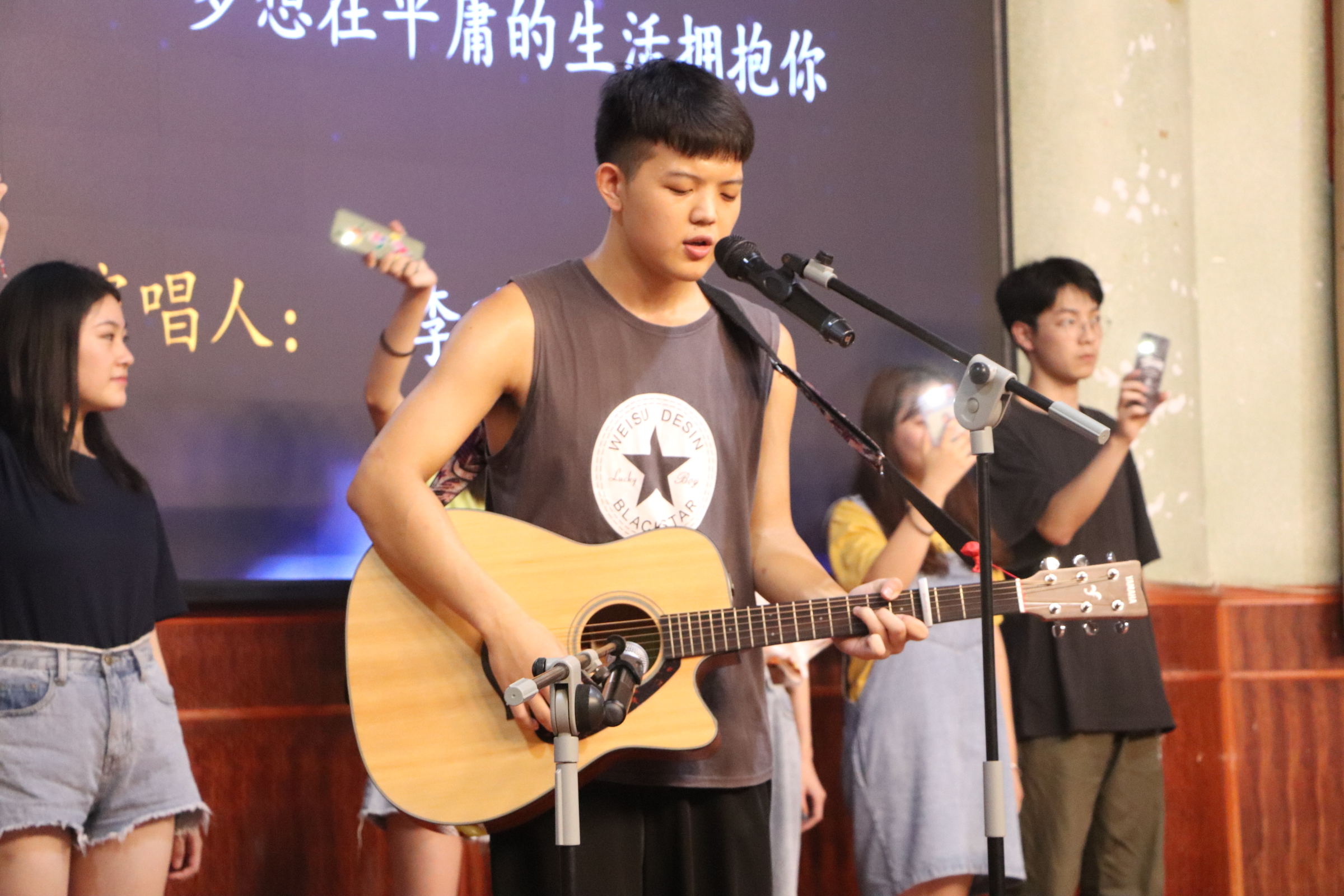 在一段精彩的开场舞之后,主持人宣布本次中秋联谊会正式开始,首先进行的是破冰游戏“步步惊心”,现场气氛在同学们的积极参与下成功引爆,看着场上坚持不放弃的同学,全场掌声雷动,激动的呐喊声、加油声夹杂在一起,充分展现出了他们无限的青春活力。而后,才艺展示、猜谜语、击鼓传花……层出不穷的游戏让大家尽情享受着这个美好的中秋之夜。其中最具特色的是才艺展示环节,2019级的新同学们积极展现自我,毫不怯场的站上了舞台,展现新生青春洋溢的一面,师兄师姐们和新生们你来我往,将全场的气氛推至顶峰,大家都沉浸在节日的欢声笑语中。