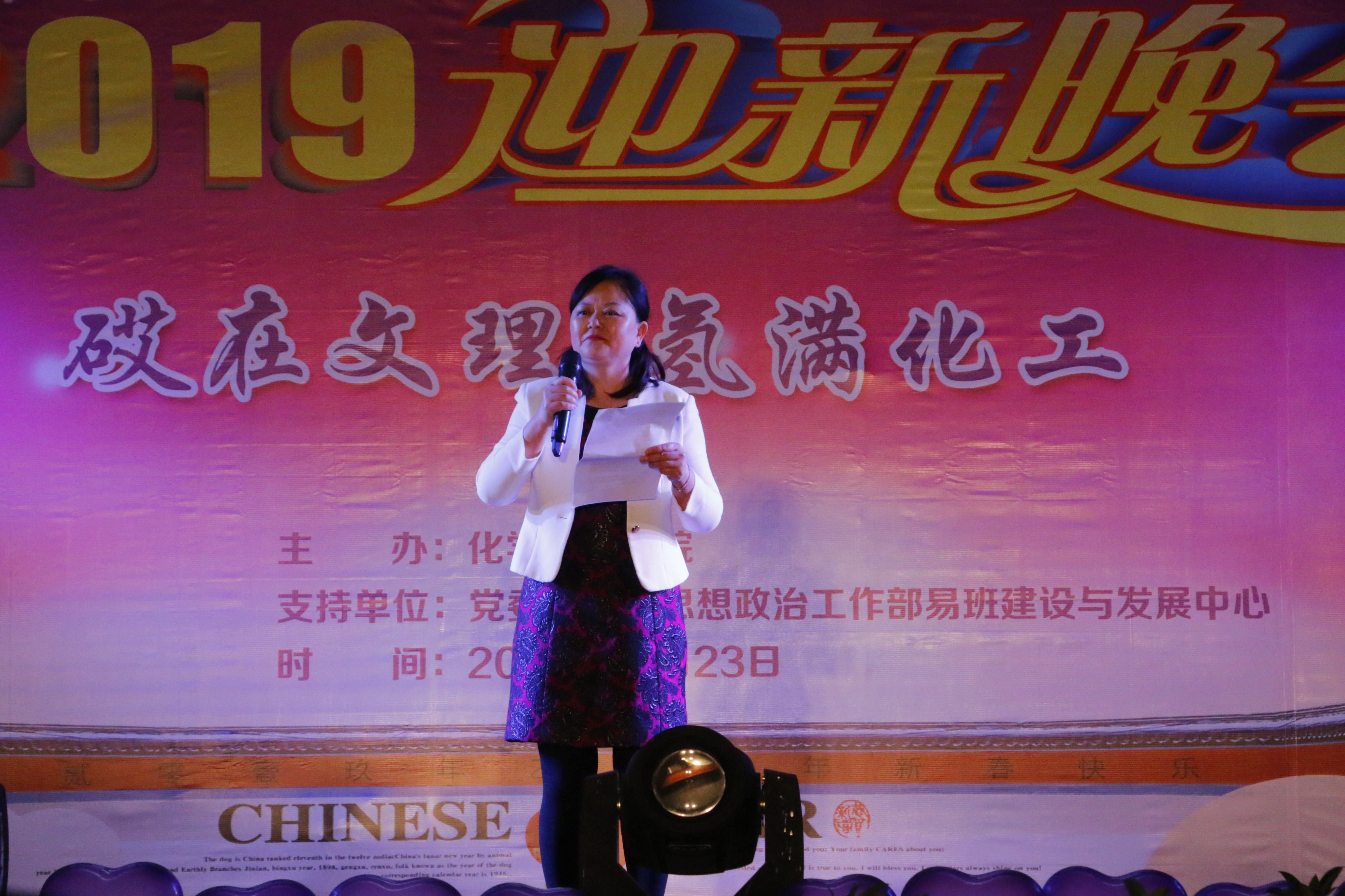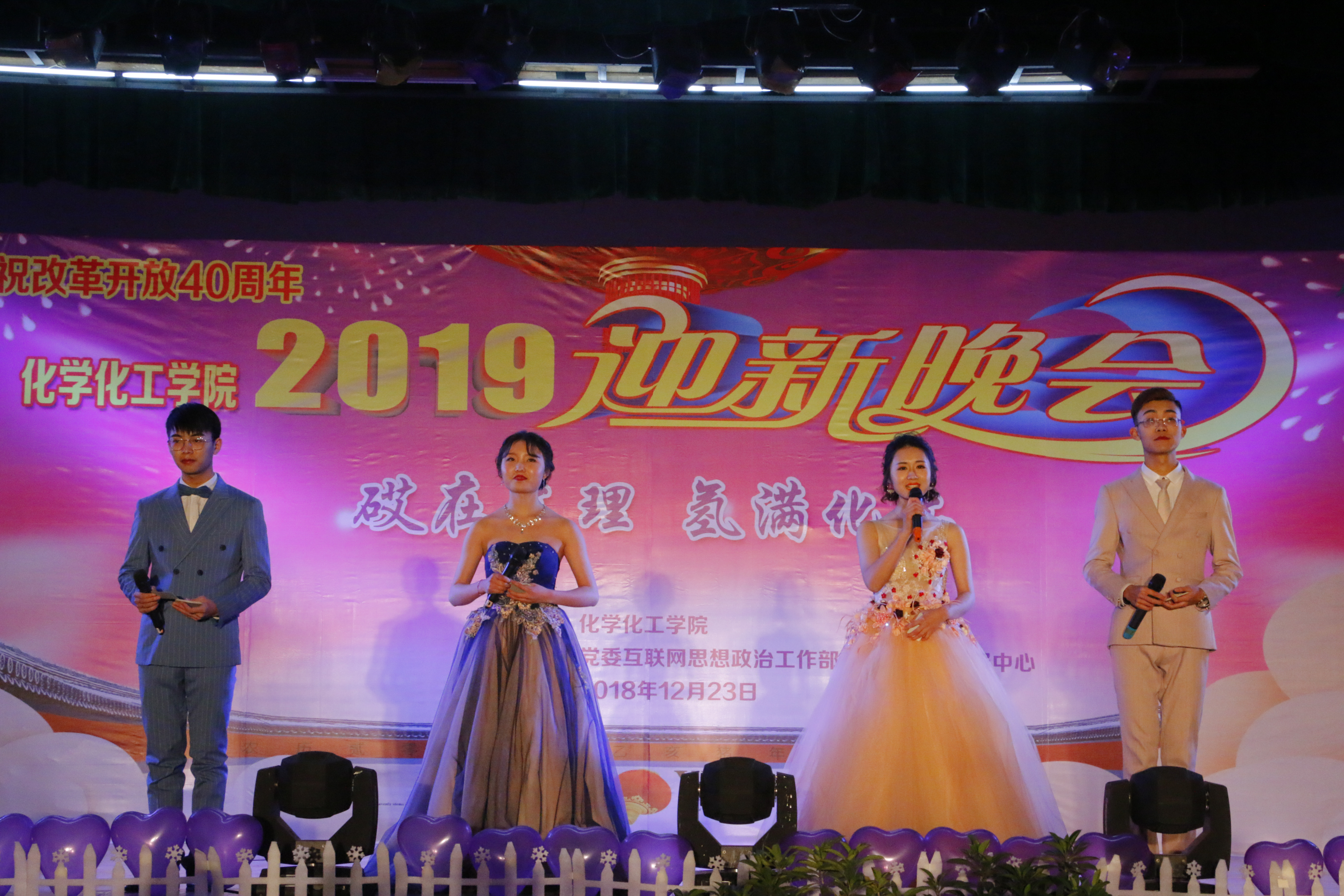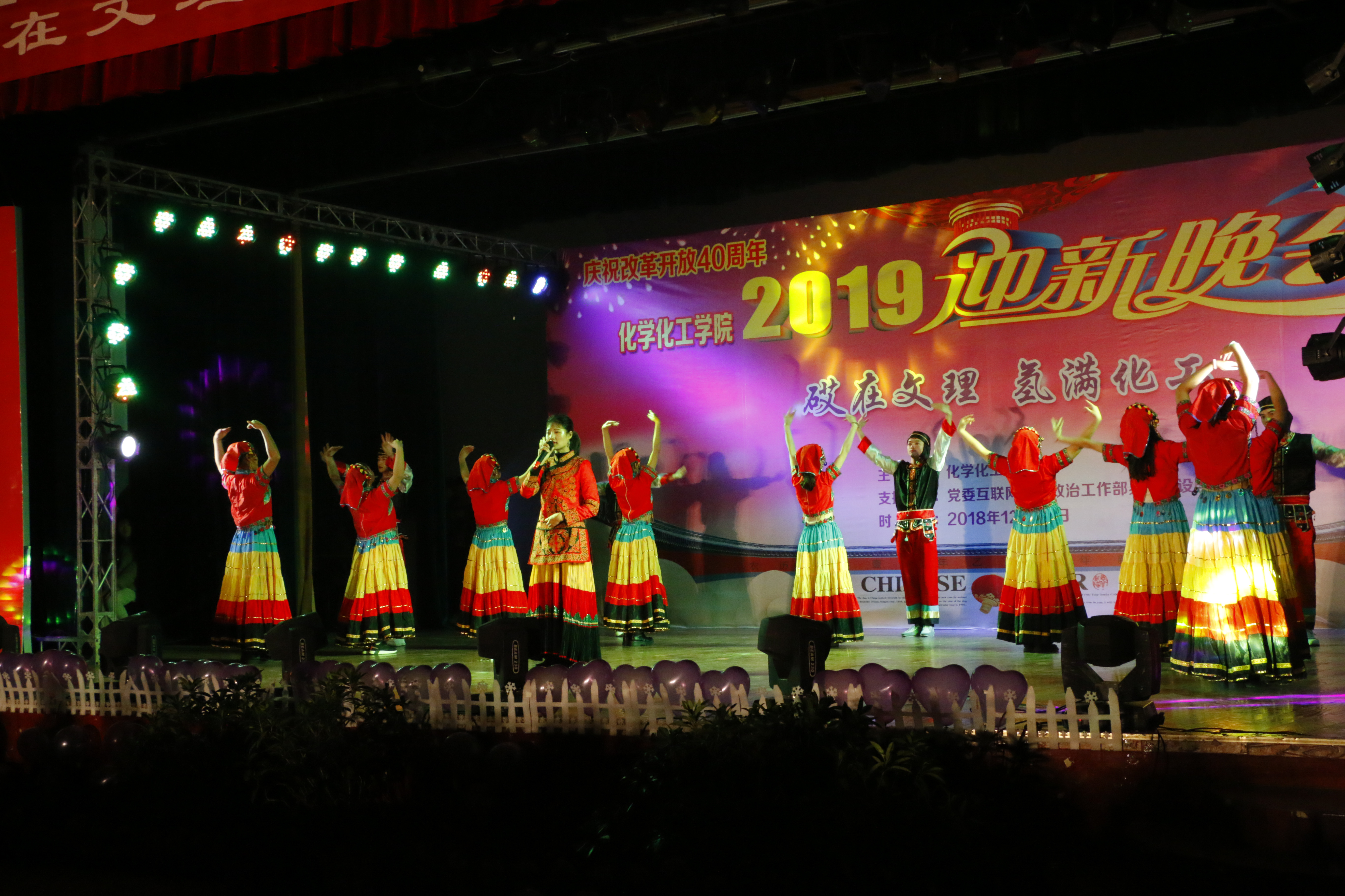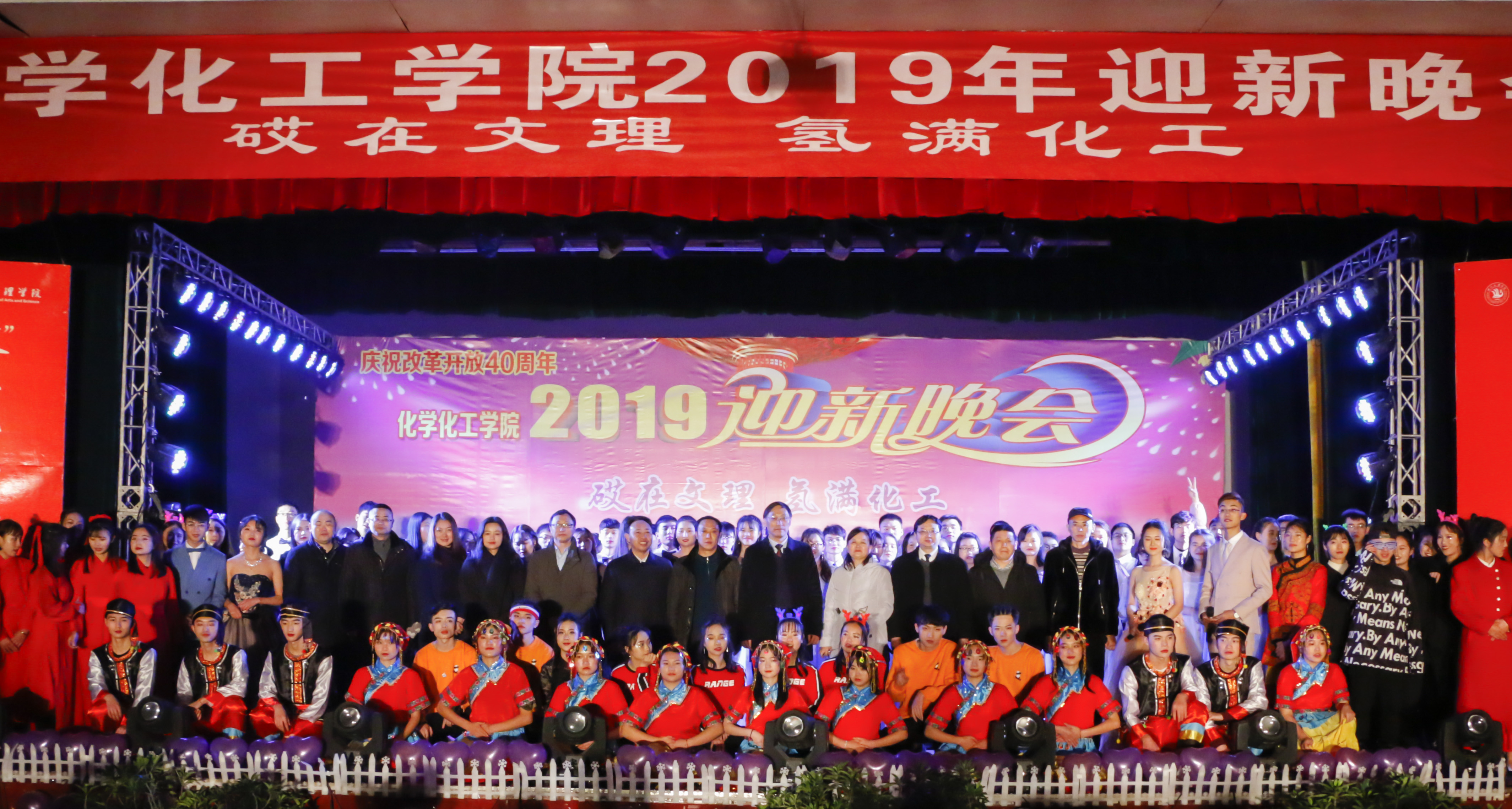 讴歌四十年,花开新时代,改革路上再出发,追梦途中又启程。12月23日19:00,庆祝改革开放40周年暨永利3044集团官网“砹在文理,氢满化工”迎新晚会在永利3044集团官网南坝校区活动中心举办。公司党委书记王成端教授、党委副书记侯忠明教授和公司职能部门领导、嘉宾以及化工公司全体老师、同学们近400人观看了晚会。