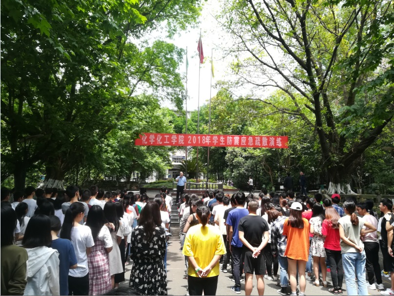 2018年5月14日中午,永利3044集团官网于在南坝校区举行防震应急疏散演练。化工公司党总支书记朱朝菊、党总支副书记屈川、学工办主任兼团总支书记彭波到场指挥。公司主要员工干部和230余名2017级同学参加了此次活动。