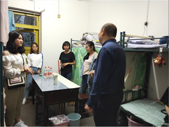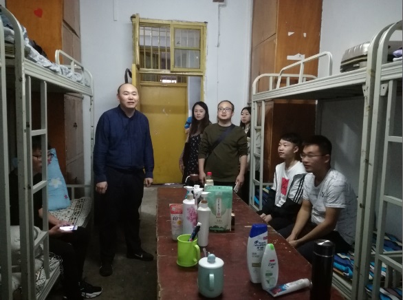 2018年9月13日晚,化学化工公司党总支副书记屈川、学工办主任彭波、辅导员张魏霞率领部分团学干部走访2018级新生寝室。