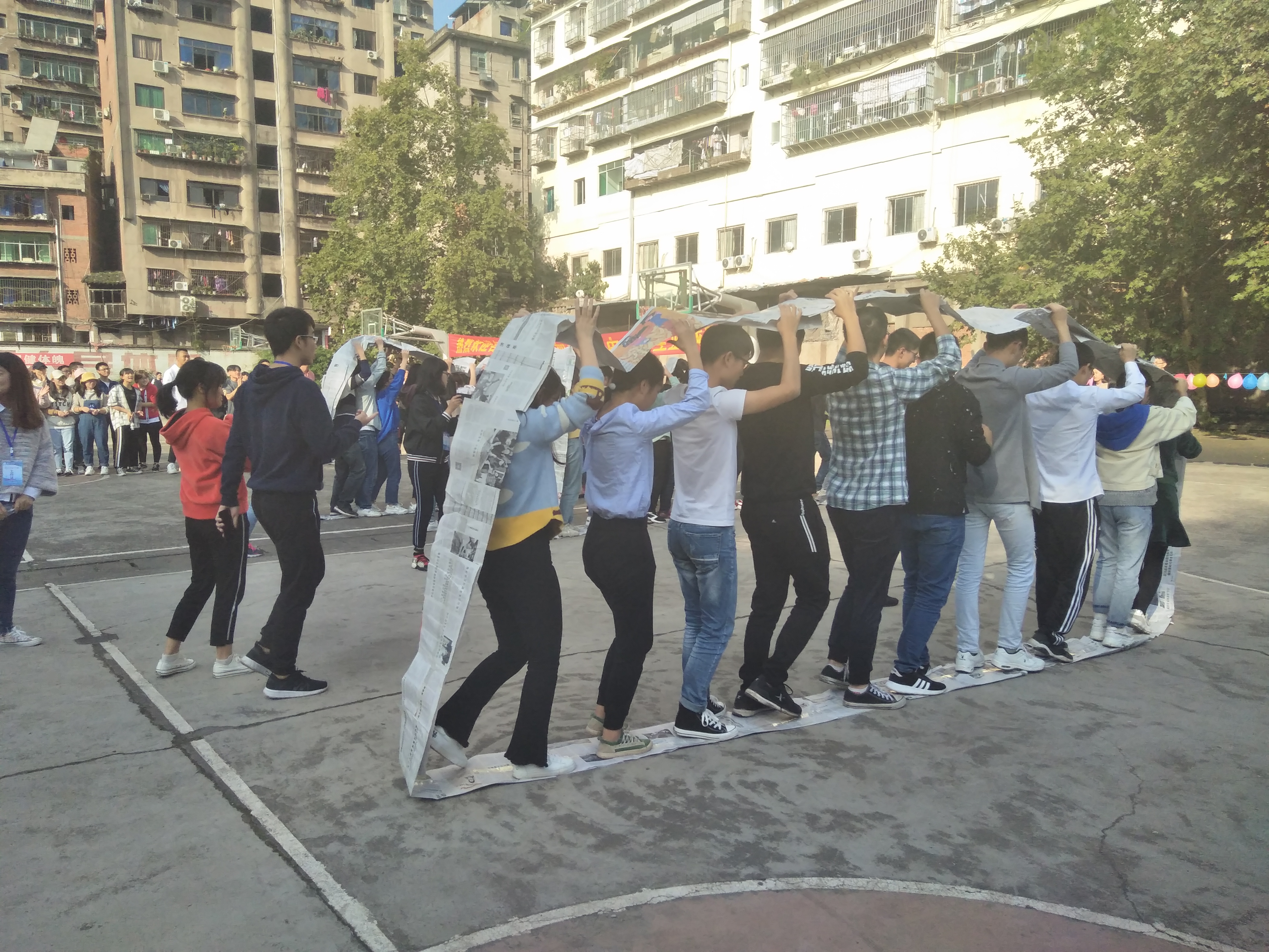 在本次活动中,首先由主持人致辞开场白并介绍了活动流程,全体人员齐唱了共青团团歌,随后开始了一系列的团队比赛项目,主要包括了双龙戏珠,三人四足,吸管传递橡皮筋,同舟共济共四个项目,四个比赛项目都属于团队接力活动,需要考验团队的细心与耐心,更需要团队默契的配合,在活动中,同学们组织有序,热情高涨,积极参与,参赛者拼尽全力,努力地为班级争光,其他同学为同班参赛者加油。最后比赛以五班第一名,三班第二名,四班和六班并列第三名的成绩画上了完美的句号,员工干部为获奖班级颁发奖品,工作人员进行场地维护,至此,本次活动圆满结束。