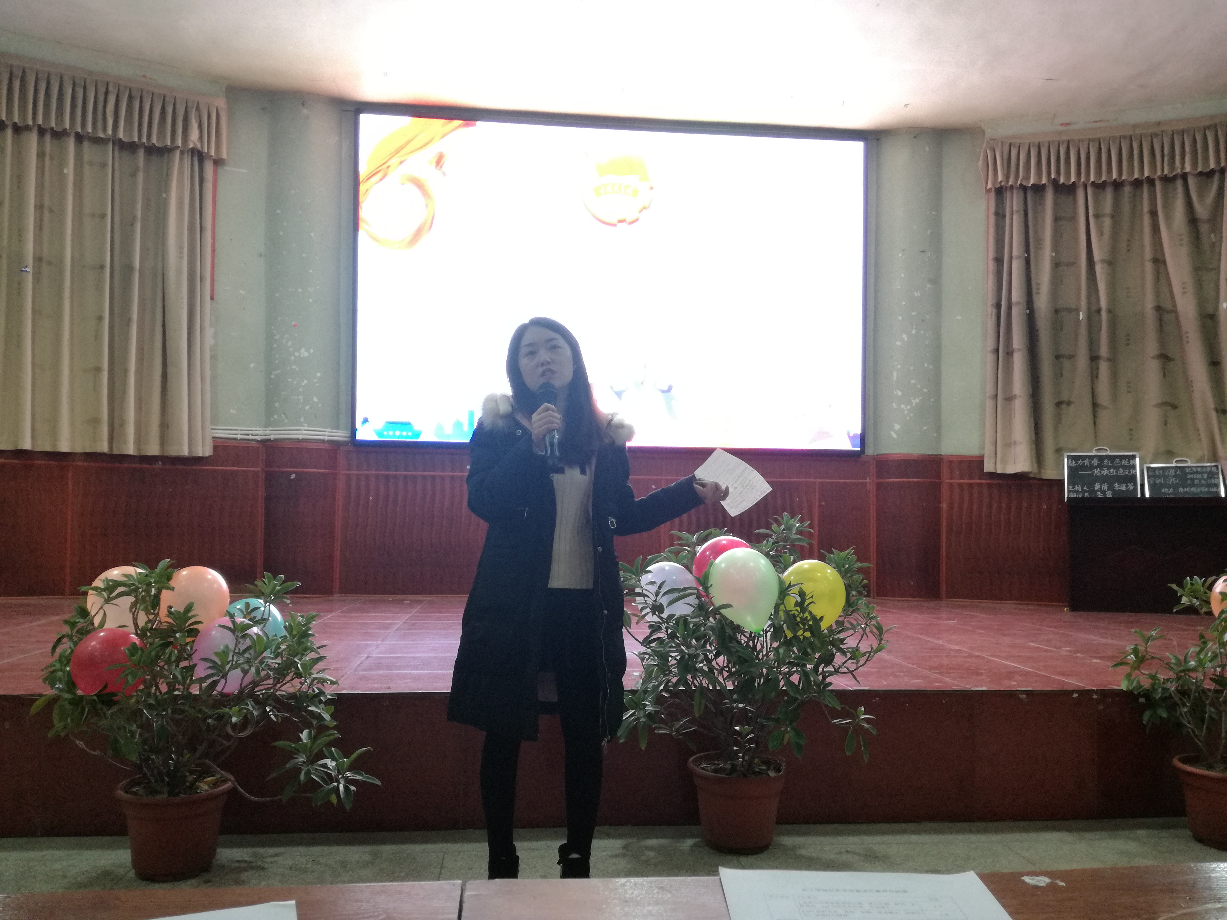 为促进同学们对红色文化的了解,鼓励同学们学习革命先辈的优良品质,2018年11月18日晚七点,永利3044集团官网在南坝校区学术报告厅开展了以“魅力青春,红色经典”为题的团组织生活。辅导员张魏霞老师、刘丹老师及团总支第一副书记孙亨宇等部分团学干部出席了本次活动并担任评委,大一280余名同学参与了此次活动。