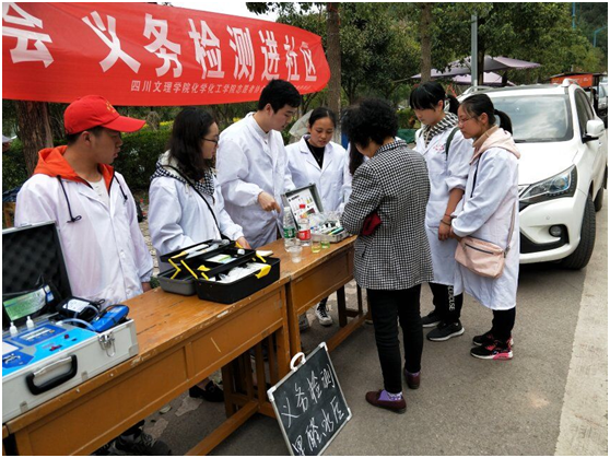 本次志愿服务活动是以国家资助体系受助同学为志愿者主体,以义务检测和远程家教服务为主要内容。15:00,志愿服务活动在学府雅苑门口拉开序幕。志愿者们在小区内宣传化学食品相关知识,为居民提供以甲醛为主的室内空气、家居水质检测。为了充分发挥公司数理化优势,减轻家长负担,本次志愿服务活动以“川文理化工之声”微信公众号为平台推出了“你问,我答” 远程网络家教活动,针对中小员工的数理化等学习问题,同学们在线答疑解惑。活动结束后,志愿者们对已检测的居民进行登记,为存在问题的住户提供改善方案,并进行后期跟踪,确保问题得到解决。