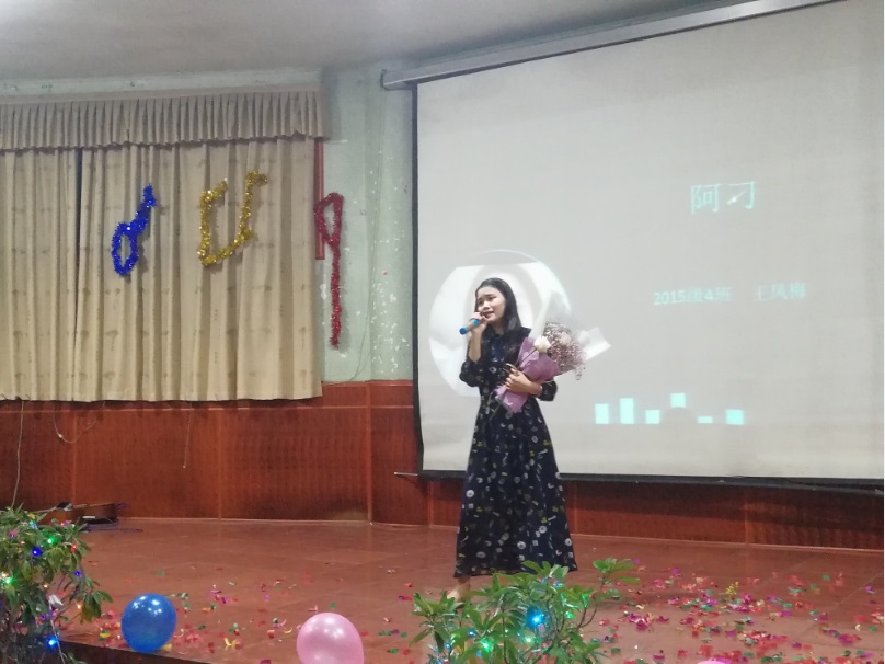 经过层层选拔,来自化工公司大一到大三的十名歌手闯进决赛,在当晚为大家表演了《一眼万年》、《Rolling in the deep》、《小半》、《约定》等十首歌曲。《何必在一起》、《等你下课》、《成全》演绎了青春爱情故事,诠释了同学们对爱情的定义;《一眼万年》、《十年》、《小半》从时间的角度,歌唱了同学们对友情、爱情的执着;《阿刁》告诉大家面对人生的波澜曲折,一定要不畏困难,在奋斗和希望中砥砺前行;《易燃易爆炸》、《Rolling in the deep》则用火爆、明快的曲调表达了同学们对人性的理解,自我反省、走出人生阴影的决心和信心。现场观众手舞荧光棒、拍拍手,喝彩声、掌声把大赛一次又一次地推向高潮。最终,2015级4班的王凤梅同学演唱的歌曲《阿刁》获得了评委的青睐,以9.33分的成绩夺得了桂冠。同时,2017级5班宋琦琦同学以168票获得“川文理化工之声”微信公众号网络投票的“最佳人气奖”。