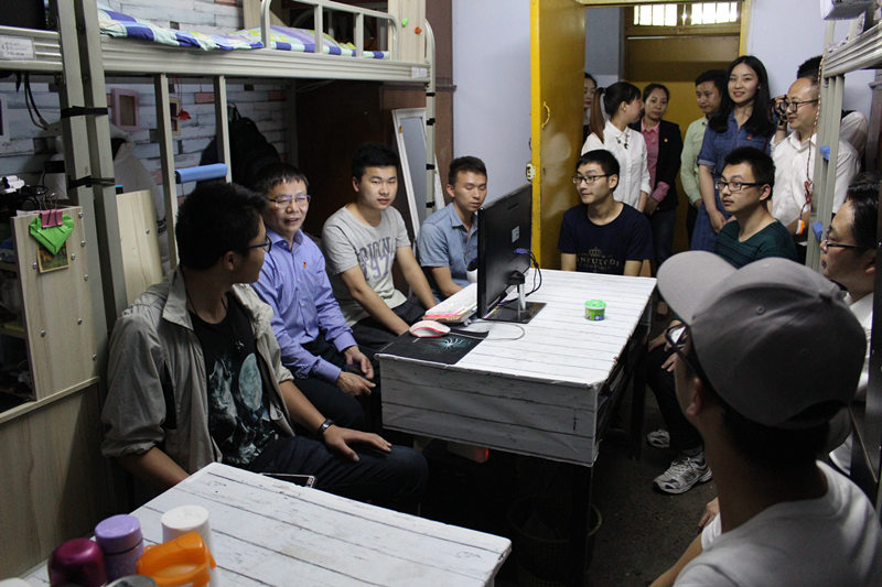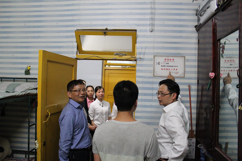 书记王洪辉、副书记侯忠明深入员工寝室,慰问青年学子,送去节日的祝福和问候。在员工1舍,王洪辉书记一行驻足品鉴了寝室装扮,查看了寝室内务,并与寝室成员共叙校园生活。王洪辉书记充分肯定了学子们在寝室文化节中自己动手装扮寝室,繁荣校园文化生活的行动。他勉励青年员工要传承“五四”精神,勇担青春使命,砥砺意志品格,提升综合素质,奋发图强、勇于创新,为实现民族复兴贡献自己的青春和力量。