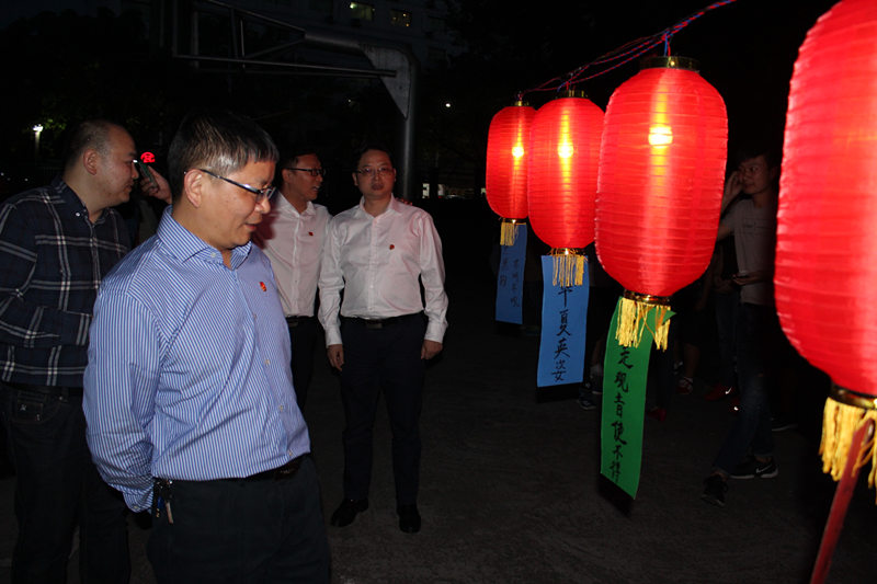 随后,王洪辉书记、侯忠明副书记亲临“筑梦青春· 文理风华”游园活动现场,与青年员工共享节日喜悦。南坝校区张灯结彩、火树银花,在彩灯与灯笼交相辉映下,洋溢着节日的喜庆。王洪辉、侯忠明与学子们一起猜灯谜、看表演,活动现场热闹非凡,笑声四溢。青年员工们尽情欢乐,沉浸在节日氛围中。