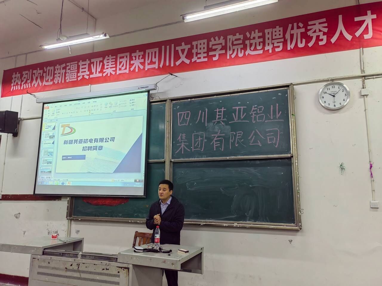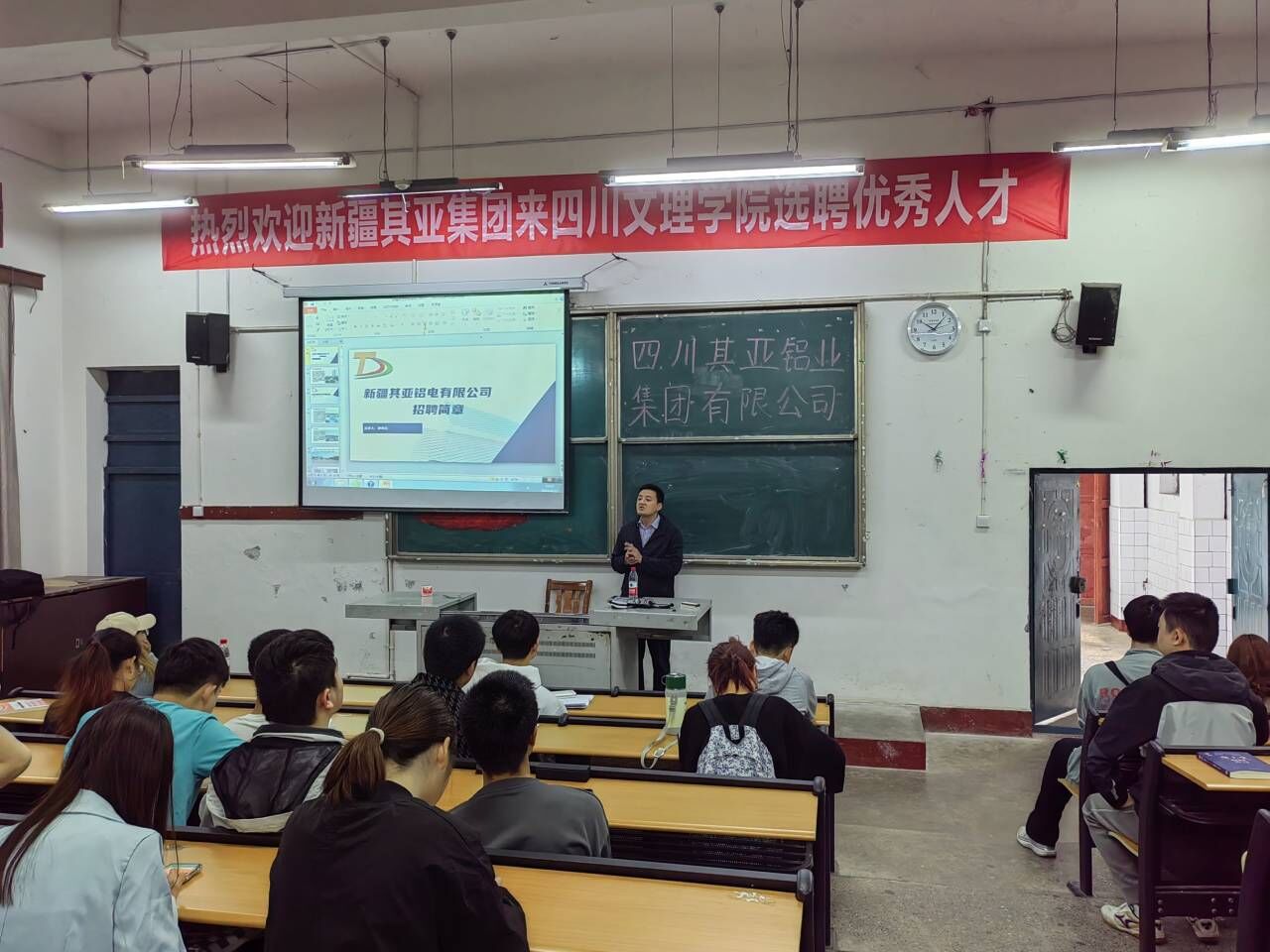 为深入贯彻党的二十大精神,落实党中央、国务院“稳就业”“保就业”决策部署,进一步拓宽员工就业渠道,全力促进公司2023年毕业生实现高质量就业,4月27日上午10点,永利3044集团官网在一教楼111教室举办了四川其亚铝业集团有限公司新疆分公司宣讲会。公司2023届毕业生参加了66人,公司学工办主任崔宝玉老师和专职辅导员张魏霞老师来到现场指导员工就业。