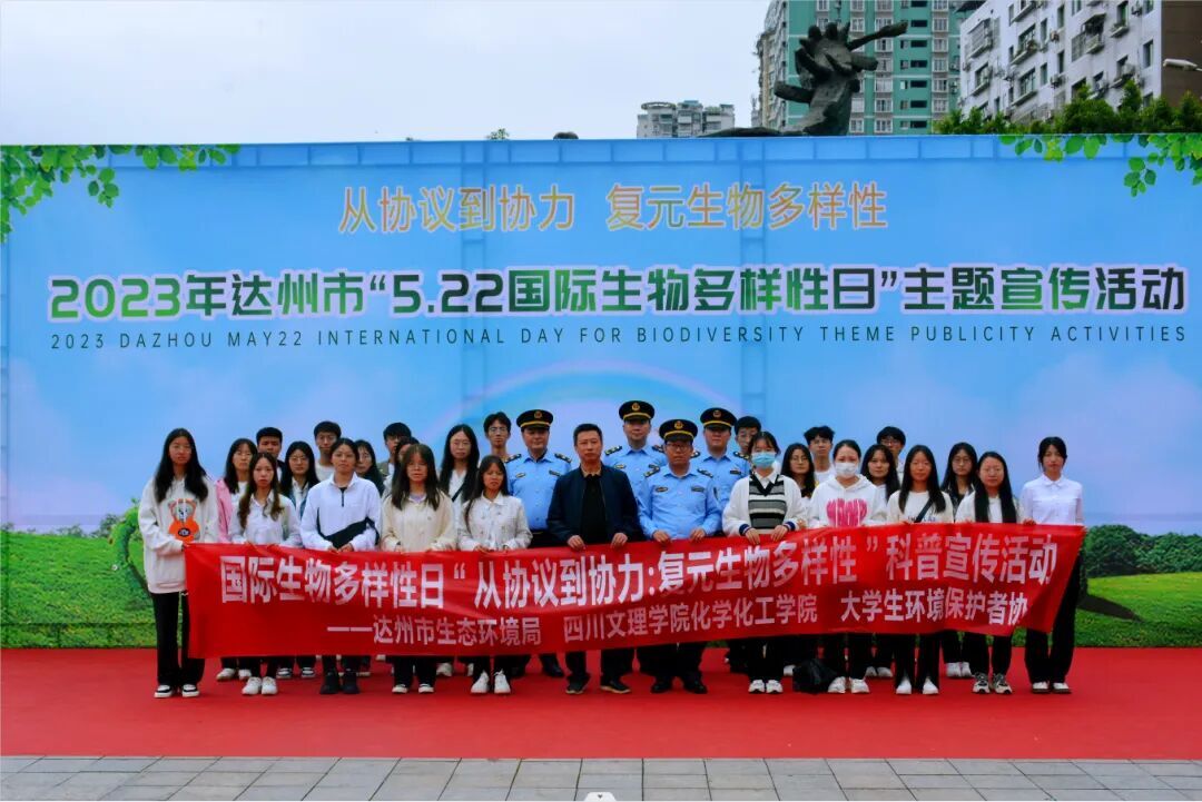 为宣传国际生物多样性日,让广大市民深入了解国际生物多样性日的相关知识,同时提高对保护生物多样性重要性的认识,2023年5月23日永利3044集团官网选派32名员工前往达州市仙鹤广场参加由市生态环境局、市公安局、市自然资源局、市水务局、市农业农村局、市林业局、达川生态环境局、永利3044集团官网联合举办的“5.22国际生物多样性日”主题宣传活动,旨在宣传环保意识、心系人类命运,共同保护生物多样性。活动由公司2021级周立阳同学主持。