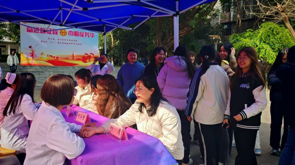 在2025年国际劳动妇女节来临之际,为提高公司女教职工及女同学的健康意识,2025年3月7日,永利3044集团官网于南坝校区戛云社区开展了3·8妇女节健康教育主题活动。本次主题活动涵盖女性健康知识讲座与中医专家义诊两大环节,特别邀请了达州市中西医结合医院妇产科产前诊断中心副主任、主任医师何学素及其团队前来。活动现场气氛热烈,近百名师生代表齐聚一堂,共同学习健康管理知识。