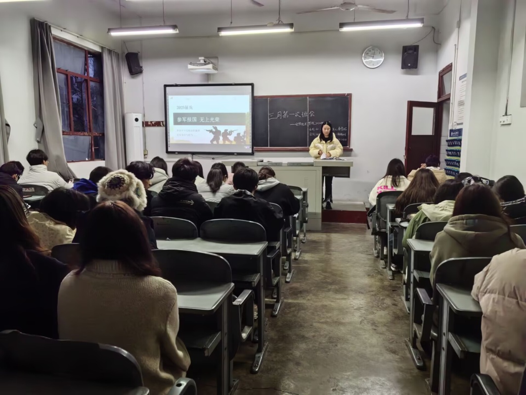 此次班会各班辅导员围绕征兵条件、参军益处、入伍流程及优待政策展开全面宣讲,通过数据图表、案例视频等可视化形式,系统解读2025年征兵新政策,为同学们解答疑惑、激发参军热情。