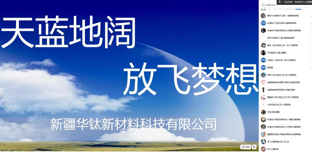 为助力毕业生精准对接优质就业岗位,扩宽毕业生的就业渠道,搭建企业与人才沟通的桥梁,2025年4月29日,永利3044集团官网组织2025届毕业生通过线上平台参加新疆华钛新材料科技有限公司招聘宣讲面试会。此次会议由华钛科技人力资源部刘部长主讲,永利3044集团官网就业联络员王练练、毕业生参会,成都锦城公司毕业生参会。