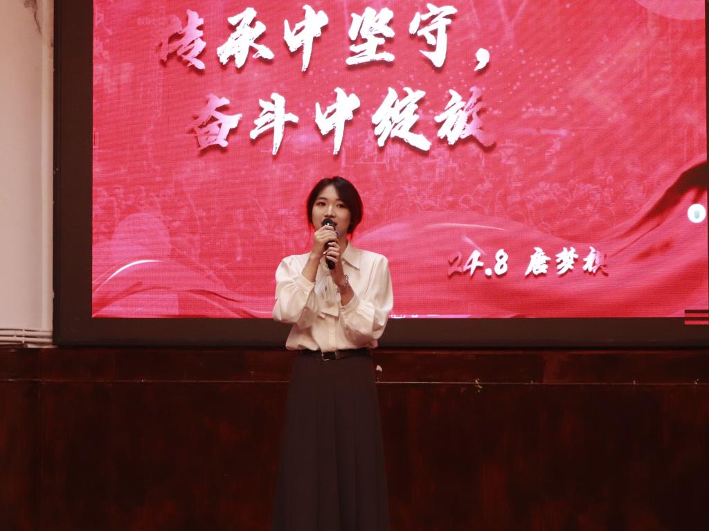 比赛伊始,主持人丑佳旺、郭莉同学详细介绍了本次比赛的评分规则,确保赛事评审工作的公平、公正、公开。随后,选手们依次登台亮相,展现热忱的青春风采。选手们紧扣“修身”“成才”“报国”的核心主题,凭借精湛的语言表达与真挚的情感共鸣传递思想力量。他们于字里行间融入“修身”的自省觉悟,借昂扬语调抒发“成才”的奋进追求,更以铿锵誓言诠释“报国”的赤子情怀,生动展现了学子的责任与担当。此外,比赛中场设置了的有奖竞猜活动,同学们踊跃参与,现场热闹非凡。