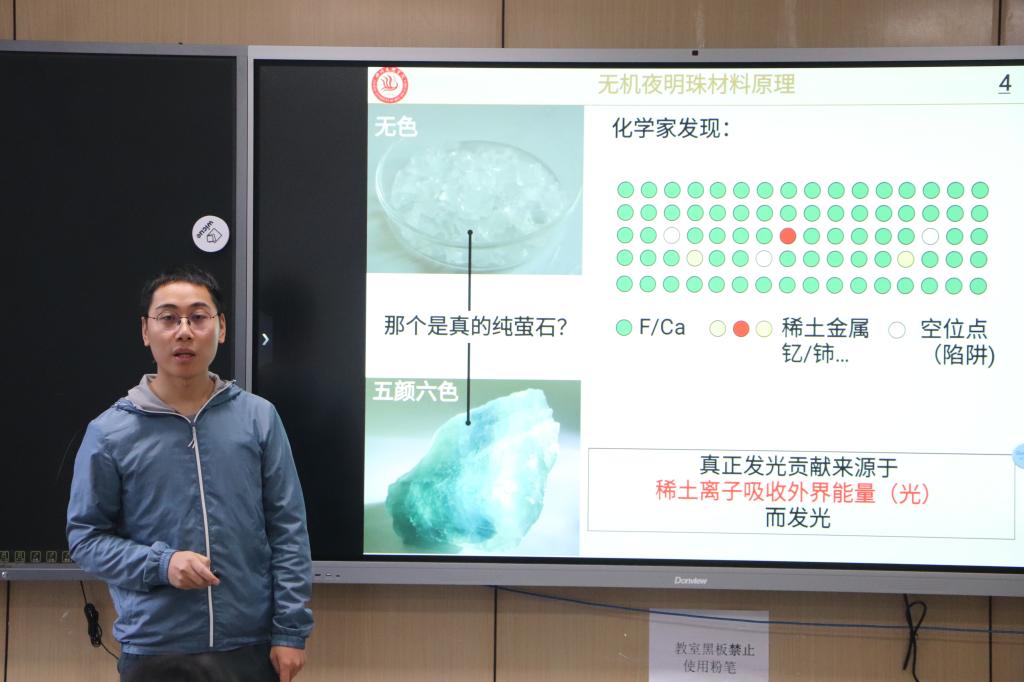 最后,杨波博士强调了新材料研究对推动科技进步和产业升级的重要性,鼓励同学们积极参与科研实践,培养创新思维。他指出,有机发光夜明珠材料不仅是科技前沿的发现,更是服务国家战略的重要研究方向。他希望同学们在学习中不断探索,为材料科学的发展贡献力量。