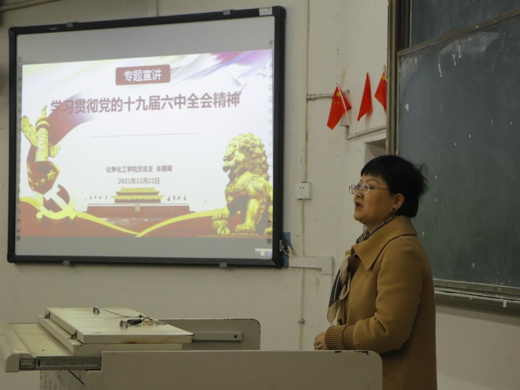 为深入学习贯彻党的第十九届六中全会精神和省十一届十次全会精神,20211222日下午17:10,化学化工公司党总支书记朱朝菊在一教楼100教室作“党的第十九届六中全会精神”专题宣讲,公司全体教职工和部分员工党员参加此次宣讲会议。