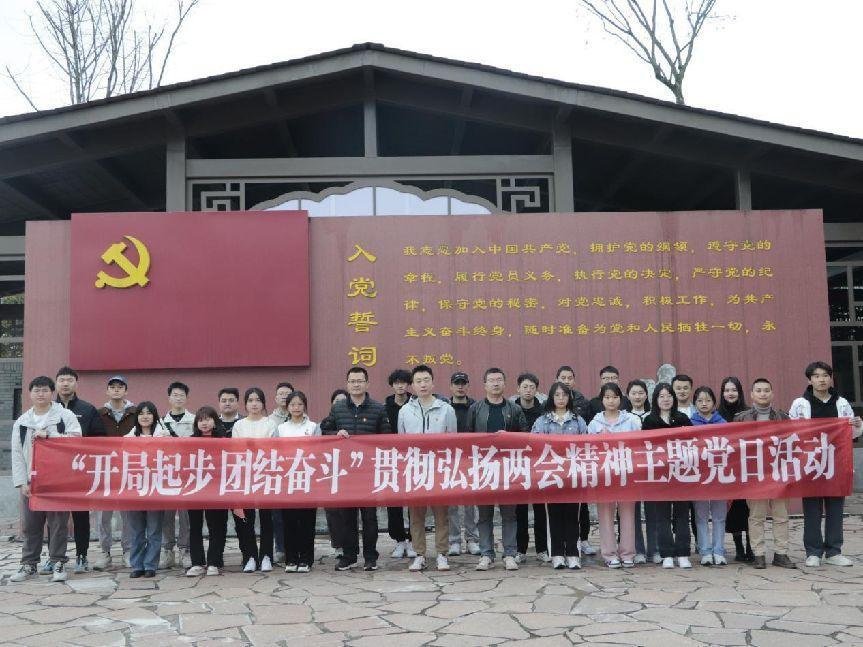 为深入学习宣传贯彻党的二十大精神,教育引导广大党员从党的二十大专题学习汲取精神力量,在新的一年里,进一步坚定理想信念,主动肩负时代重任,开启新征程,2023年4月6日,永利3044集团官网员工党支部组织开展了“开局起步,团结奋斗”贯彻弘扬两会精神主题党日活动。化学化工公司党委副书记潘维,学工办主任崔宝玉,专职辅导员罗云、李苹以及教师李扬磊带领员工党员们先后前往石桥列宁主义街和红色渠县纪念园开展党日活动。