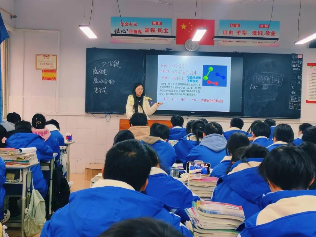 2023年12月5日,秦杰老师在铁路中学化学教研组的公开课活动中,以“提升员工化学核心素养,创建自主学习型课堂”为主题,成功讲授了《化学键》一课。铁路中学化学教研组全体教师参与了听课和研讨。