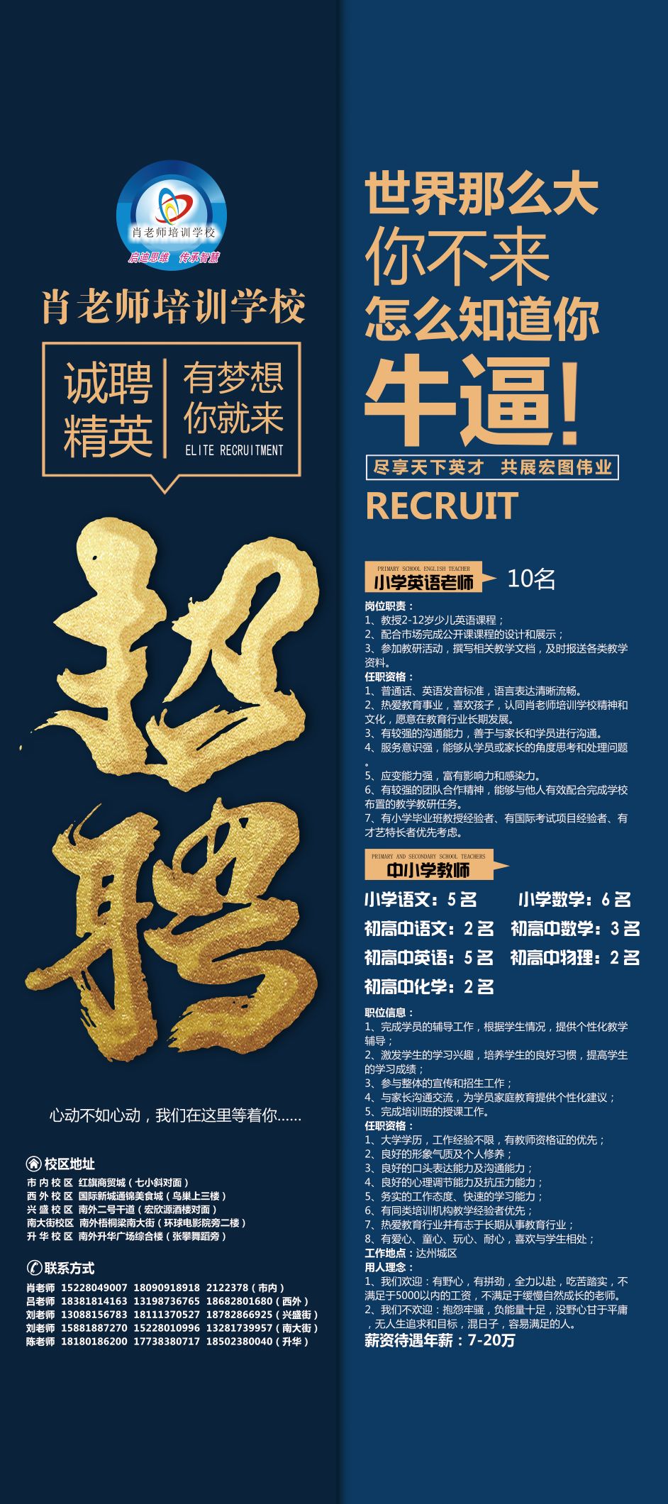 达州市肖老师培训公司招聘公告