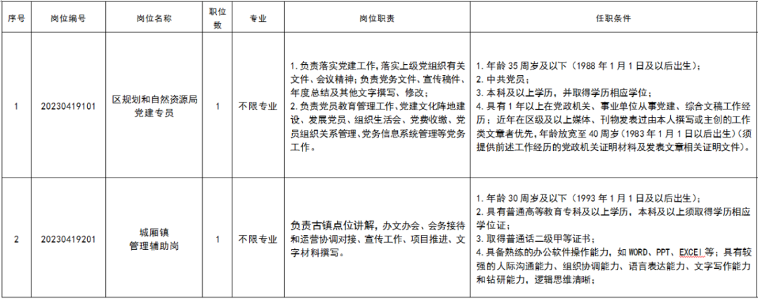 岗位20230419101(区规划和自然资源局党建专员)咨