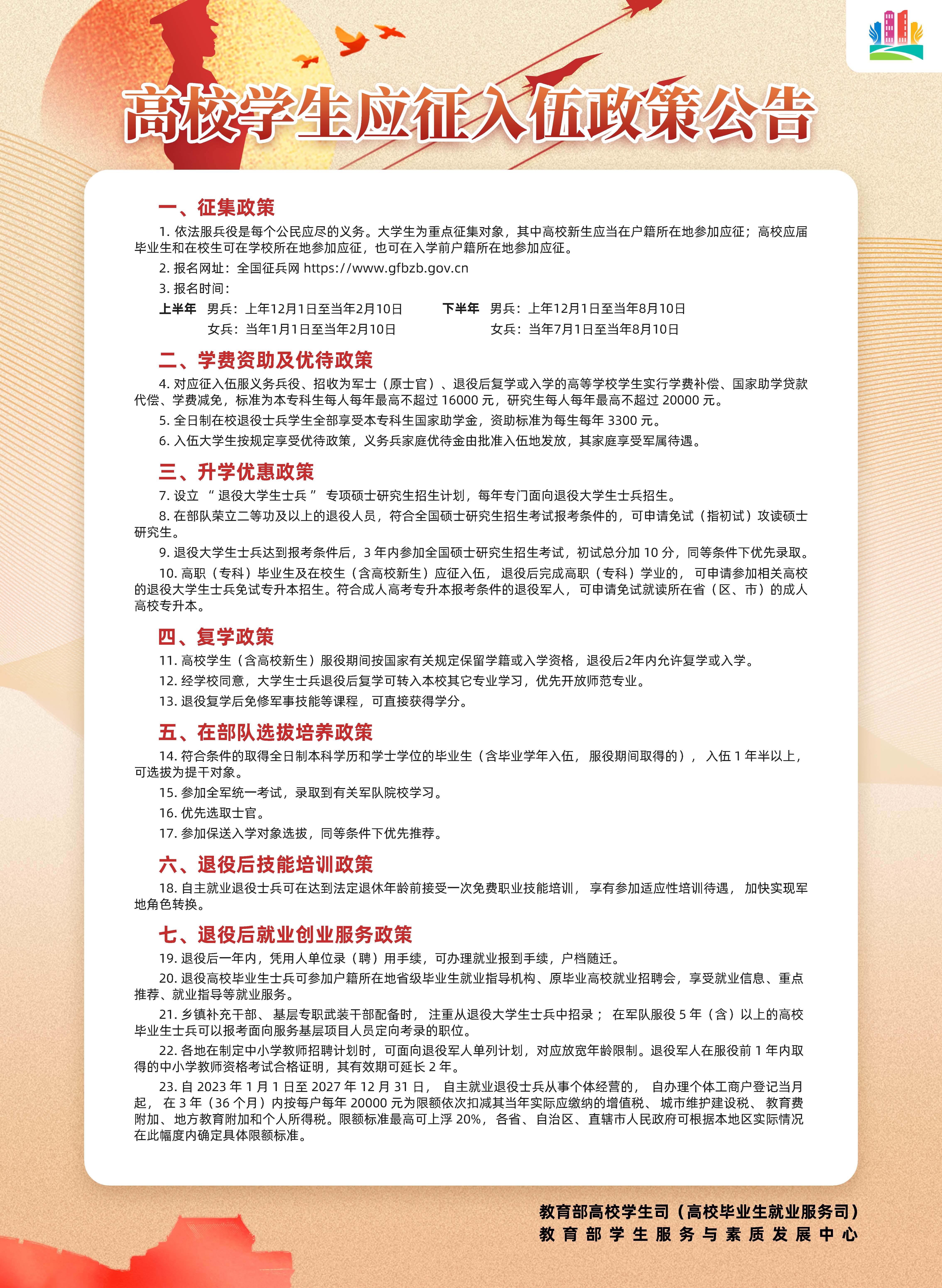 转发“ 高校员工应征入伍政策公告”