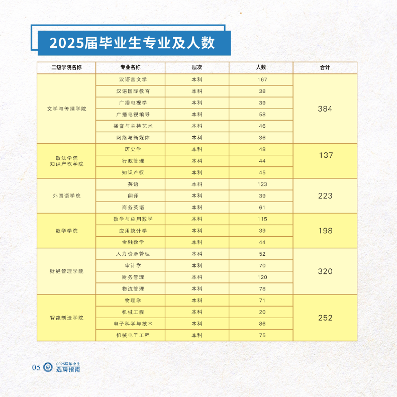 2025届毕业生专业及人数列表