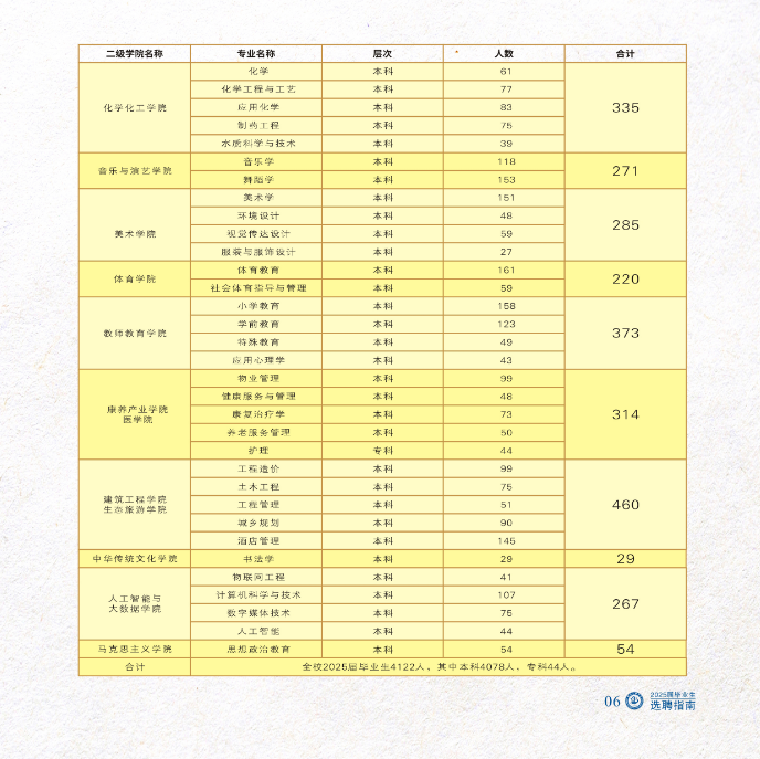 公司2025届共有56个专业,4122名毕业生,其中55个本科专业,毕业生4078名,1个专科专业,毕业生44名。详见《2025届毕业生人数及专业》(附件1)。