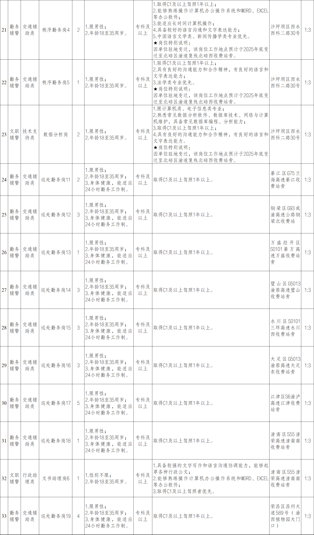5. 岗位特殊要求:岗位要求年龄、学历、经历、专业(须与岗位要求的学历匹配)、技能等以各岗位的具体要求为准,详见岗位表。年龄计算截止2025年4月20日,如年龄18至35周岁,是指1989年4月21日至2007年4月20日期间出生。